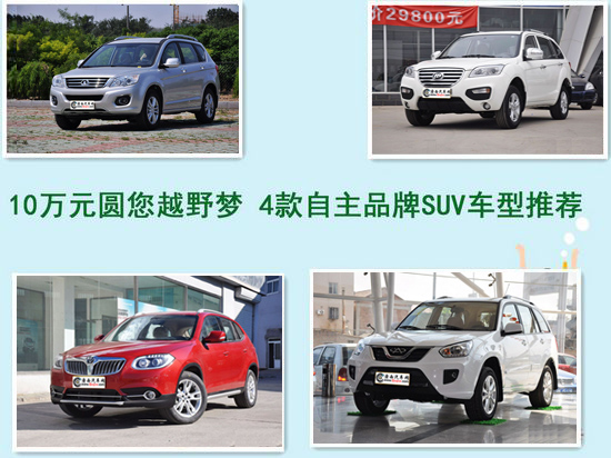SUV之所以熱銷,大概是因?yàn)槊總(gè)男人都有一個(gè)夢想,關(guān)于越野,關(guān)于探索,關(guān)于闖世界;隨著女性地位的不斷提高,越來越多的女白領(lǐng)也顯示出御姐氣場,一輛SUV簡直就是絕配。男女都愛,SUV熱銷也是情理之中的事情。今天,小編為大家搜集了4款10萬元區(qū)間的自主品牌SUV車型,物美價(jià)廉,嗯,正是我們所追求的!
