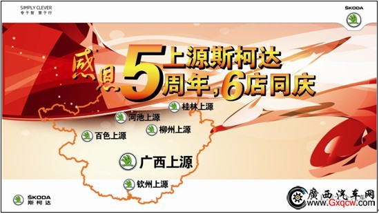 2012年6月,對上源斯柯達(dá)來說是特殊的一月,整個(gè)6月是上源斯柯達(dá)建店5周年的月份,上源斯柯達(dá)攜手廣西上源、桂林上源、柳州上源、欽州上源、百色上源、河池上源共6家斯柯達(dá)4S店共同舉辦了“上源斯柯達(dá)5周年,6店同慶,百萬酬賓”的大型客戶回饋活動。