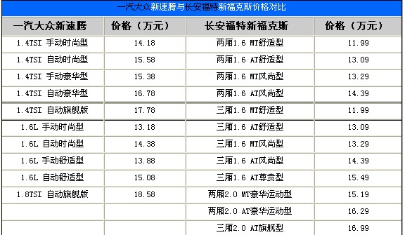 但是速騰再怎么向商務(wù)靠攏,它還是一款動(dòng)力勁爆的車(chē),?怂乖僭趺醋呒兇膺\(yùn)動(dòng)路線(xiàn),它的價(jià)位也決定它還是一輛家用車(chē),所以這兩款車(chē)的對(duì)決還將繼續(xù)下去。速騰以1.6L,1.4T,和1.8T覆蓋低端至高端的動(dòng)力,而?怂怪饕褪1.6L和2.0L兩種排量。如果把它們當(dāng)成家用車(chē)來(lái)比較的話(huà),那么1.6L的車(chē)型無(wú)疑是銷(xiāo)量最大也是最具代表性的車(chē)型。筆者從速騰和?怂沟能(chē)系里分別選擇了一款1.6L自動(dòng)擋的車(chē)型,它們是售價(jià)14.38萬(wàn)元的速騰 2012款 1.6L 自動(dòng)時(shí)尚型和售價(jià)14.39萬(wàn)元的?怂 2012款 三廂1.6 AT風(fēng)尚型,也就是今天的主角。