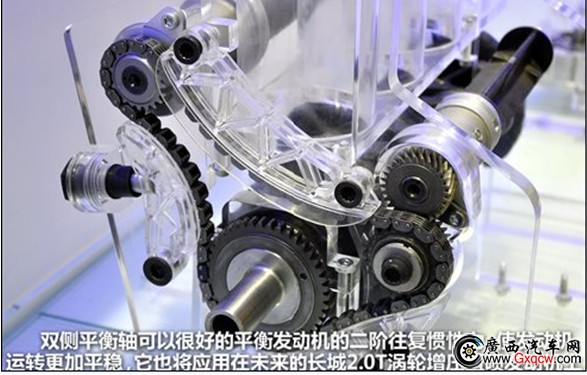 曲軸通過鏈條來帶動平衡軸旋轉(zhuǎn),而且平衡軸的轉(zhuǎn)速一定是曲軸轉(zhuǎn)速的1/2,這樣雖然一定程度上增加了發(fā)動機(jī)的負(fù)荷,但是可以帶來更平順的表現(xiàn)。這項技術(shù)未來會應(yīng)用在代號為4C20的2.0T渦輪增壓汽油直噴發(fā)動機(jī)上。