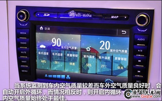 車內(nèi)空氣質(zhì)量監(jiān)控系統(tǒng)是通過安裝在車內(nèi)和車外的兩個傳感器來分別監(jiān)測空氣質(zhì)量。當(dāng)系統(tǒng)監(jiān)測到車內(nèi)空氣污濁而車外空氣良好時,會自動開啟外循環(huán);情況相反時,則開啟內(nèi)循環(huán)。這樣就可以使乘員艙的空氣質(zhì)量始終處于最佳。