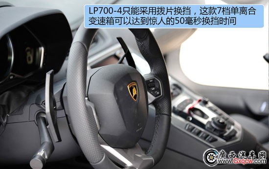 蘭博基尼Aventador LP700-4搭載的是6.5L V12自然吸氣發(fā)動機,沒有渦輪增壓,700匹的馬力和650牛米的最大扭矩,能讓這款超級跑車在2.9秒將速度提升到100公里/小時。另外,這款超級跑車7速單離合變速器的換擋時間僅需要50毫秒,幾乎快接近F1序列式變速箱的換擋速度。蘭博基尼Aventador LP700-4這款車是采用了四驅(qū)系統(tǒng),可以保證更迅速更平穩(wěn)的駕駛狀態(tài),讓這款車跑車可以更穩(wěn)定的加速到350公里/小時。