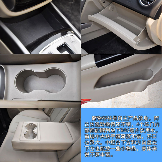 儲(chǔ)物往往是自主產(chǎn)品軟肋,而這次逸動(dòng)做得還不錯(cuò),4個(gè)車門內(nèi)部都能順利放下800毫升飲用水。前排中央扶手箱深度不錯(cuò),開口也很大。中控臺(tái)下方和方向盤左下方也能放一些小物品,總體來(lái)說(shuō)不算豐富。尤其要表?yè)P(yáng)一下逸動(dòng)的導(dǎo)航和娛樂系統(tǒng),樣式有點(diǎn)像天籟,既方便操作,同時(shí)也避免了陽(yáng)光對(duì)視線的影響。而510升后行李廂表現(xiàn)也不錯(cuò),內(nèi)部平整,5個(gè)人的隨身行李放進(jìn)去都是沒有問題的。