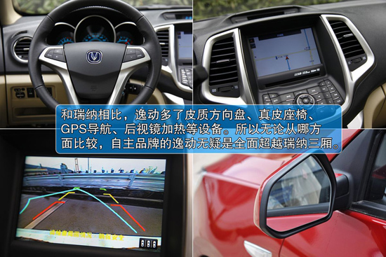 舒適方面,兩車都具有電動天窗、多功能方向盤等常用功能。但逸動多了皮質(zhì)方向盤、真皮座椅、GPS導(dǎo)航(含DVD和可視倒車)、后視鏡加熱等設(shè)備。所以無論從哪方面比較,自主品牌的逸動無疑是全面超越瑞納三廂。
