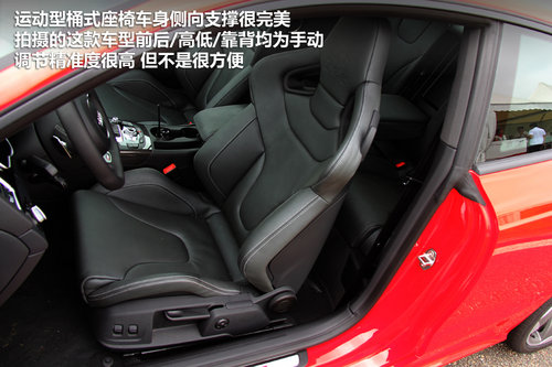 因為試駕時間較短,所以車內(nèi)的功能沒有辦法一一體驗,根據(jù)廠商提供的資料來看,中央通道上的中控臺經(jīng)過了重新布置,MMI增強型導航系統(tǒng)的終端控制按鍵數(shù)量從8個減少到6個,音量控制開關現(xiàn)在還集成了跳躍功能,可通過操作直接跳到下一首歌曲。全新的內(nèi)飾設計還包括了全新升級的點火開關和轉(zhuǎn)向柱。另外,奧迪RS 5還可通過按鈕直接啟動選配的座椅加熱功能以及通風系統(tǒng),并以白色背光點亮空調(diào)系統(tǒng)的顯示。
