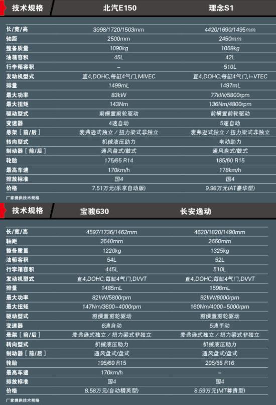 話題進入動力與操控部分,這四款車又得重新分組,因為配備1.6升發(fā)動機的只有逸動,其余三款車無一例外全是1.5升排量。同時,也只有逸動配備了5速手動擋(沒有自動擋試駕車),其余三款車分別為E150配4AT、S1為5AT、630為6AT。