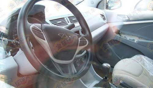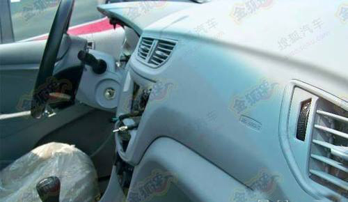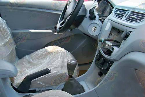 在內(nèi)飾設計上,A16的設計以簡約為主要格調(diào),三幅的方向盤尺寸適中,沒有多余的修飾。中控臺采用了上下兩層的設計,上部頂端是橫式空調(diào)出風口,按鈕設計也是最普通的三旋鈕式設計,下面是DVD屏幕,諜照中還沒有安裝,但目測尺寸應該還可以。整車內(nèi)飾的色彩比較單一,顏色的搭配也很簡單,但考慮到這是測試車并非量產(chǎn)車型,我們也就不多評論。