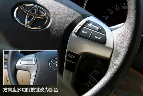 至于其他小細(xì)節(jié)的改動,恐怕就要請來老車主才能一一明辨了。例如方向盤上面的多功能鍵,由原來的銀色改為黑色,不過更有意思的是,漢蘭達的方向盤按鍵竟然包含了罕見的空調(diào)溫度調(diào)節(jié)功能。