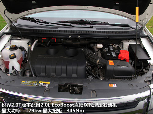 銳界2.0T版本所配備的這臺2.0L EcoBoost直噴渦輪增壓發(fā)動機,在蒙迪歐致勝身上已經(jīng)首先應(yīng)用,這臺全鋁發(fā)動機的優(yōu)勢在于機身重量更輕,燃油消耗更高效,動力輸出更強勁。179kw的最大輸出功率和345Nm的最大扭矩輸出,讓銳界2.0T版本在動力方面的表現(xiàn)并不遜色與之前推出的3.5L版本。