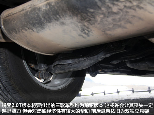 熟悉3.5L版本銳界的朋友們都知道,全時四驅(qū)系統(tǒng)在三個不同配置車型上均為標配。但2.0T版本銳界則在驅(qū)動方式方面徹底變革,將要推出的三款車型均為前驅(qū)車。個人認為,這樣的驅(qū)動形式的轉(zhuǎn)變,也是為了能夠讓車輛更省油,似乎2.0T版本更傾向主打城市駕駛,而3.5L版本則肩負起了越野的重任,這樣的細分轉(zhuǎn)變,也更加細化了銳界在用途以及經(jīng)濟性方面的目標。