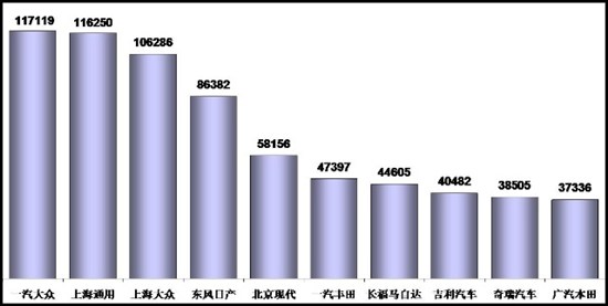 而從各車企的銷量排名來看,前三名仍是上海通用、一汽大眾和上海大眾的天下,成為消費(fèi)者最為親睞的汽車廠商,而這三者的競(jìng)爭也日趨白熱化。自主品牌方面,長城汽車?yán)^續(xù)留在國內(nèi)銷量榜的十名以內(nèi),而奇瑞和吉列則憑借大量的出口,在國內(nèi)外銷售批發(fā)榜上占據(jù)了一席之地。