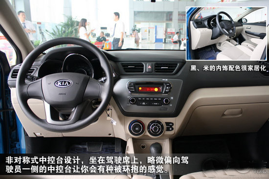 盡管K2內(nèi)飾件材料以硬塑料居多,但值得贊許的是做工精細,并不感覺生硬,巧妙地營造出了不錯的整體內(nèi)飾感覺。非對稱式中臺設計,坐在駕駛席上,略微偏向駕駛員一側的中控臺讓你會有種被環(huán)抱的感覺,黑、米的內(nèi)飾配色很家居化。