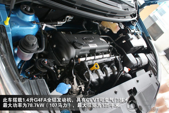 動力方面,K2搭載了1.4升G4FA和1.6升G4FC動力總成,兩款發(fā)動機都具有CVVT可變氣門技術,并且材質(zhì)均為全鋁制造。最大功率分別為78.7kW(107馬力)和90.4kW(123馬力),最大扭矩方面為135牛米和155牛米。傳動系統(tǒng)有五速手動和四速自動變速箱可以選擇。