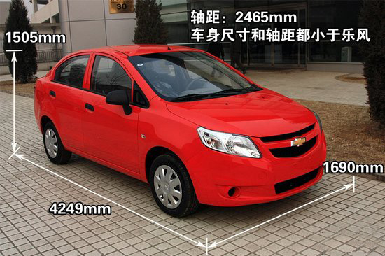 第一眼看到新賽歐時,感覺它跟樂風頗有幾分相像,畢竟都是雪佛蘭家族的車型,又采用家族式車頭設(shè)計,相似也是正常的。如果是家用,筆者倒是更傾向于略帶微笑似的賽歐。雖然同屬于小型車,但新賽歐的定位要比樂風略低一些,車身尺寸方面自然也會稍微有所減小,不過幅度很小,甚至難以察覺。4249mm×1690mm×1505mm的尺寸比起樂風的4345mm×1690mm×1507mm稍有減小。2465mm的軸距也小于樂風的2480mm。