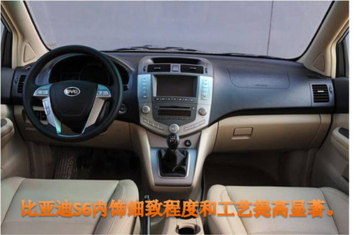 在配置上,比亞迪S6可謂下足了功夫。DVD導航、車載藍牙、9喇叭揚聲器在2.0L尊貴型上都有配備。定速巡航以及電動天窗在出現在2.4L車型上。另外,無鑰匙進入及一鍵啟動則是作為標配出現在全系車型上,達到許多中高級轎車的水準。而且右前輪盲區(qū)可視系統、前排側氣囊和側氣簾都大大提高了安全性能。