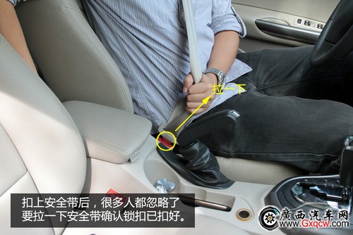 雖然扣上安全帶后,卡扣會發(fā)出“啪”的一聲,但是我們還是應(yīng)該拉扯一下安全帶確保安全帶鎖扣已經(jīng)扣好且沒有損壞。這是很多車主在使用安全帶時忽略的步驟。