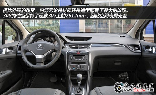 相比外觀的改變,內(nèi)飾無論是材質(zhì)還是造型都有了很大的改觀。多處采用金屬質(zhì)感的鑲邊處理,而仿碳纖維飾板的使用,似乎表明308不是一款平庸的家用車。308的軸距保持了現(xiàn)款307上的2612mm,因此空間表現(xiàn)無差,而全新設計的真皮座椅,中間貼身位置采用打孔設計,門板扶手出也使用真皮包裹。