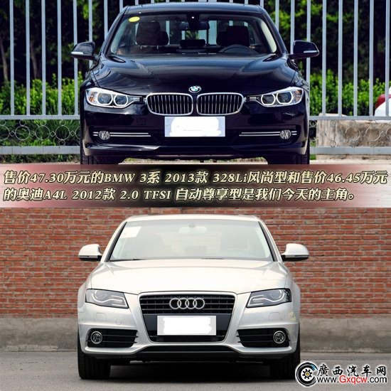 這兩款車型都擁有最先進的渦輪增壓直噴發(fā)動機,變速箱都有8個前進擋,車身都采用了輕量化設計,在技術上幾乎可以稱得上是棋逢對手。所以本文選取了最吸引消費者的2.0T車型,并且選擇了兩個車系中在這個排量中配置最高的車型,以真實的反映這兩款車的實力。筆者選取的車型是售價47.30萬元的BMW 3系 2013款 328Li風尚型 和售價46.45萬元的奧迪A4L 2012款 2.0 TFSI 自動尊享型 。它們也是我們今天的主角。