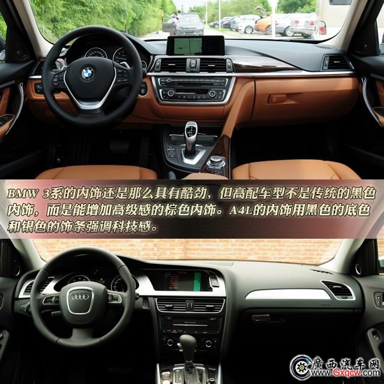 BMW 3系和奧迪A4L雖然不是各自品牌的旗艦車型,但是它們卻是各自品牌的代表車型,所以它們的內(nèi)飾風(fēng)格和配置也都十分具有代表性。BMW 3系的內(nèi)飾還是那么具有酷勁,不過因為本次選取的是高配車型,所以不是傳統(tǒng)的黑色內(nèi)飾,而是能增加高級感的棕色內(nèi)飾。A4L的內(nèi)飾一直以來都強調(diào)的是科技感,在A4L上也不例外,黑色的底色和銀色的飾條讓它達到了自己的目的。