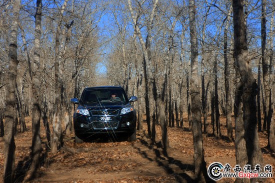 下了高速路段,車隊(duì)很快進(jìn)入考驗(yàn)車輛持續(xù)爬坡能力的山區(qū)路段。在這方面,中興無(wú)限沒(méi)有讓我們失望,在幾十公里的爬升路程中,其匹配的2.4L的沈陽(yáng)航天三菱4G69發(fā)動(dòng)機(jī)充分發(fā)揮了它低速大扭矩的優(yōu)勢(shì),在近一個(gè)小時(shí)車程中,為這款體積龐大的SUV輸送出源源不斷的向上動(dòng)力。而且在大角度拐彎中,這款離地間隙較高的SUV,沒(méi)有明顯的側(cè)傾感。據(jù)說(shuō),這得益于2012款中興無(wú)限采用的集強(qiáng)度高、減震好、操控優(yōu)、越野強(qiáng)4大優(yōu)勢(shì)于一體的底盤。其前懸架采用了穩(wěn)定性較強(qiáng)的雙叉臂式扭桿彈簧獨(dú)立懸架,橫向剛度大、抗側(cè)傾性能優(yōu)異、抓地性能好。后懸掛則采用了五連桿螺旋簧,確保行車的安全性和舒適性。