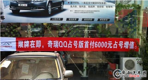 限牌政策下達后廣州、深圳連續(xù)出現(xiàn)搶購QQ事件,仔細分析起來不是偶然的,奇瑞QQ是奇瑞公司最成熟的精品小車,2012款QQ更是經(jīng)過多項升級,性能穩(wěn)定,油耗低,最低百公里油耗3.05升,維修保養(yǎng)成本低,同時還享受國家節(jié)能惠民補貼3000元。廣州限牌后奇瑞公司緊急調撥1000臺廣東省特供“占號版”QQ供應廣東市場。特供“占號版”QQ市場售價26800元起,辦理金融貸款首付6000元即可開回家,只要花6000元就能先占個號。