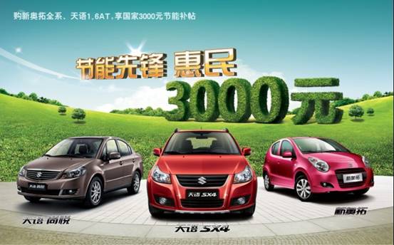 7月10日起,第八批節(jié)能惠民補(bǔ)貼已正式公布,長(zhǎng)安鈴木奧拓全系、天語(yǔ)1.6AT車型榮登目錄,其余車型同享專項(xiàng)節(jié)能補(bǔ)貼!奧拓車型3.69萬(wàn)元起、天語(yǔ)車型7.28萬(wàn)元起!