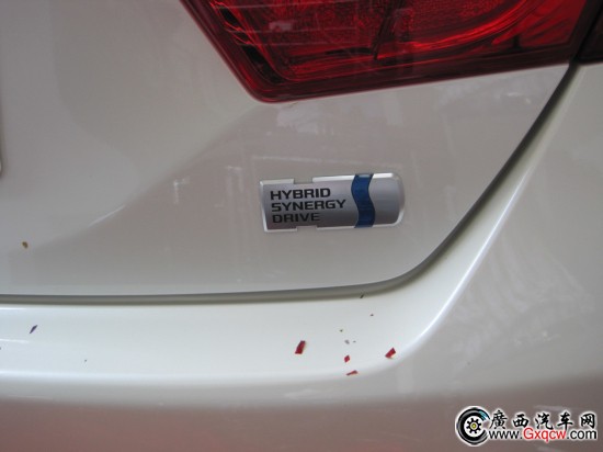 凱美瑞•尊瑞與先期開售的普通版相比,外觀方面的差異不大,區(qū)別只在于混合動力的專屬標(biāo)識:前格柵處的采用藍(lán)色的“牛頭”LOGO,前車門藍(lán)色的“Hybrid”標(biāo)識,以及車尾豐田混合動力理念的HSD標(biāo)識。