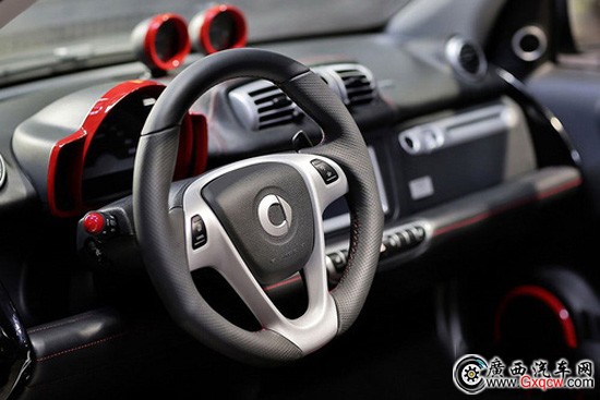 內(nèi)飾與普通版Fortwo并沒有做太大的改動,座椅采用了黑色真皮和紅色縫線,并且繡有10周年紀念款字樣。并且座椅帶有電加熱功能,車上GPS導(dǎo)航,娛樂功能一應(yīng)俱全。