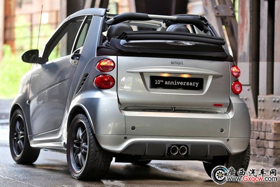 奔馳旗下的時尚汽車品牌Smart即將推出新的限量版車型。為了紀念與奔馳專業(yè)改裝廠Brabus合作 10周年,Smart推出一款10周年紀念版Fortwo,僅限量發(fā)售100臺,具體價格還未公布。