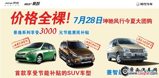 (廣西汽車網(wǎng) 訊)近日,編輯從南寧坤馳景逸1.5、景逸1.6SUV全系享受3000元惠民補(bǔ)貼, 城市第一代步SUV景逸1.6成為首款享受節(jié)能補(bǔ)貼的SUV車型, 菱智M5系列2012款上市持續(xù)熱銷! 您還在等什么? 在等一個(gè)超值優(yōu)惠的機(jī)會(huì)么?