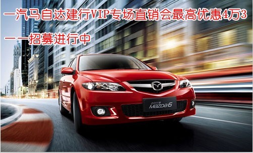 一汽馬自達(dá)建行VIP專場(chǎng)試駕直銷會(huì)將于2012年7月28日舉行,目前活動(dòng)招募火爆進(jìn)行中。