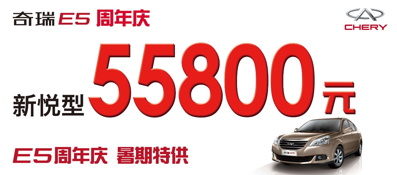 自去年7月上市以來(lái),奇瑞E5與消費(fèi)者見(jiàn)面已將近一年。一年間,奇瑞E5以人本科技不斷帶給消費(fèi)者精彩的“易生活”體驗(yàn),獲得了廣大消費(fèi)者的認(rèn)可與支持。此番,隨著上市周年紀(jì)念日的到來(lái),奇瑞E5又為消費(fèi)者獻(xiàn)上了“E5周年慶 暑假特供”的特惠活動(dòng)。特別是奇瑞E5新悅型,更是推出了55800元的震撼特惠價(jià)。