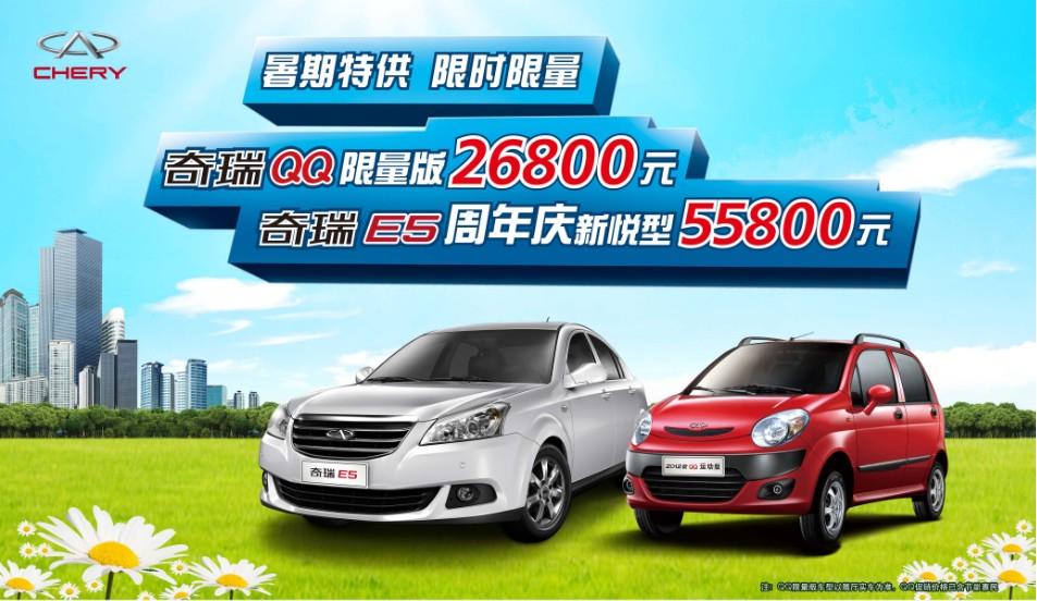 2012年7月1日起,奇瑞QQ重磅推出“暑期特供 限時限量”優(yōu)惠活動,限量版車型僅售26800元,以冰點價格回饋廣大消費者,在這個暑假為消費者帶來清爽實惠。