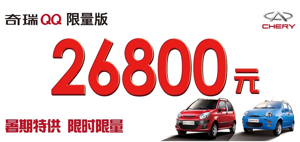 據(jù)了解,自今年7月1日起,奇瑞QQ推出限量版車型,售價僅為26800元,以前所未有的優(yōu)惠價格,讓更多消費者有能力享受到奇瑞QQ的經(jīng)典品質。此款奇瑞QQ限量版車型只在暑期限量供應,是奇瑞QQ獻給廣大消費者的暑期特惠。