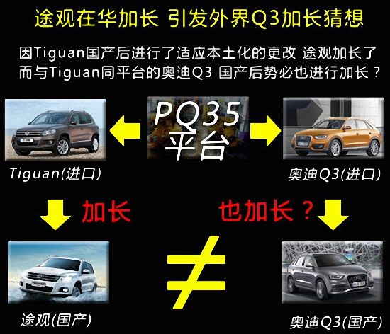 加長似乎已成為適應(yīng)中國本土化的一種趨勢(shì),就拿途觀國產(chǎn)一事來說,為迎合本土化趨勢(shì),國產(chǎn)后的途觀進(jìn)行了加長。又因途觀與奧迪Q3為同平臺(tái)車型,自然也會(huì)引發(fā)外界對(duì)Q3的加長猜想。就奧迪是否將加長的問題,奧迪Q3設(shè)計(jì)師Thomas Soppa在接受網(wǎng)通社采訪時(shí)表示:Q3針對(duì)中國市場(chǎng)將進(jìn)行一系列的改進(jìn),比如針對(duì)底盤硬度進(jìn)行重新調(diào)校,但目前Q3不會(huì)加長,但未來的改款車型不排除加長的可能。