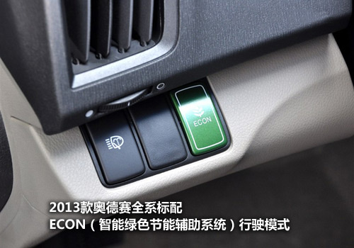 在保障優(yōu)質(zhì)駕駛感的同時(shí),為進(jìn)一步滿足消費(fèi)者對(duì)低油耗的需求,2013款?yuàn)W德賽全系標(biāo)配ECON(智能綠色節(jié)能輔助系統(tǒng))行駛模式。當(dāng)駕駛者按下ECON鍵的瞬間,顯示屏上的綠色樹葉標(biāo)識(shí)會(huì)首先讓駕駛者意識(shí)到車輛進(jìn)入了低碳環(huán)保的行駛模式。在接下來的行車過程中,ECU、發(fā)動(dòng)機(jī)、變速器、空調(diào)等將完全依照最低燃油消耗的模式智能地執(zhí)行駕駛者的意圖。經(jīng)Honda研究所的油耗測試顯示,在ECON模式的介入下,2013款?yuàn)W德賽可使行車油耗降低約7.8%。
