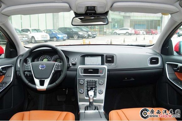 V60全黑色內(nèi)飾,渲染出強(qiáng)烈的運(yùn)動(dòng)氛圍。除了方向盤(pán)、儀表以及旋鈕等這些非采用圓形不可的部件外,你所能看到的其它零部件幾乎都采用了方形設(shè)計(jì),這與圓潤(rùn)流暢的外形似乎不太相符,但是置身于其中卻沒(méi)有絲毫的不協(xié)調(diào)。中控布局簡(jiǎn)潔清晰,所有的功能按鍵一目了然,銀色的鏤空中控面板也顯得格外搶眼。