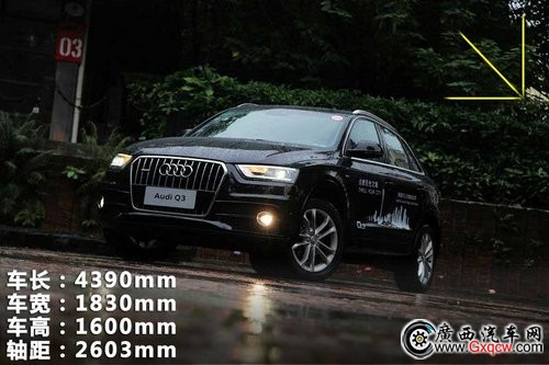 奧迪Q3的長、寬、高分別為4390mm、1830mm和1600mm,軸距為2603mm,跟進(jìn)口途觀大小相仿,而它與大家認(rèn)為的競爭對手寶馬X1(4469*1798*1583mm,軸距為2760mm)相比則要小了一圈。但奧迪Q3小巧流暢的車頂線條和明顯下沉的車尾造型,體現(xiàn)出特有的Coupé轎跑車動感風(fēng)格。