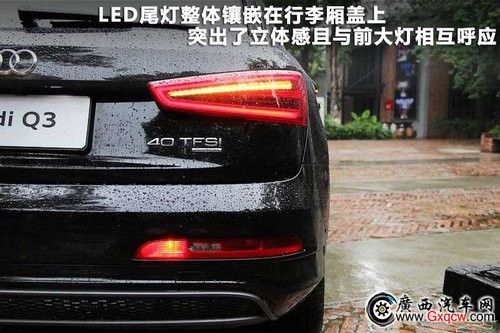 奧迪Q3的尾部采用奧迪經(jīng)典的“包圍式”設(shè)計理念,LED尾燈整體鑲嵌在行李廂蓋上,突出了立體感。此外,得益于奧迪領(lǐng)先的空氣動力學(xué)設(shè)計,奧迪Q3風(fēng)阻系數(shù)僅為0.32。