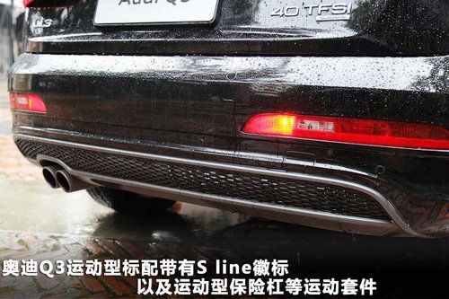 奧迪Q3 40 TFSI quattro 運(yùn)動型標(biāo)配帶有S line徽標(biāo)、運(yùn)動型保險杠、S line徽標(biāo)鋁制門檻壓條的“S line外部包”,而針對追求極致動感的用戶,還提供彰顯個性的“S line運(yùn)動風(fēng)格包”作為選裝!癝 line運(yùn)動風(fēng)格包”包括:奧迪尊享18英寸輪轂、前排運(yùn)動型座椅、拉絲鋁飾條、S line內(nèi)部徽標(biāo)、黑色織物頂棚、鋁制門檻壓條以及翼子板S line徽標(biāo)。