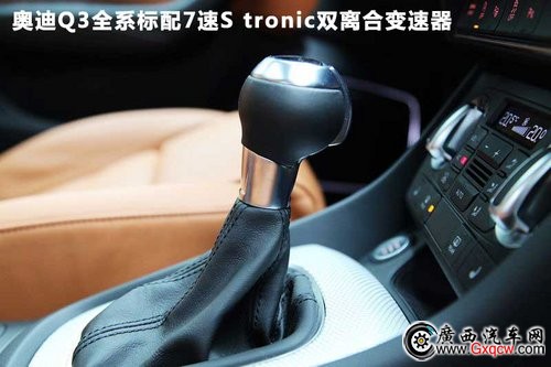 奧迪Q3全系標配7速S tronic雙離合變速器,通過換擋桿或方向盤后方的換擋撥片進行換擋,體驗和享受手動變速的操控樂趣。在D模式下,以發(fā)動機轉低速來換取燃油的經濟性,但遲滯現(xiàn)象不明顯。而在S模式下,提升換擋的轉速,時刻保持強勁的動力輸出。