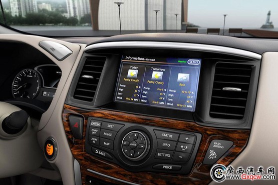 內(nèi)飾方面:目前還沒有公布2013款Pathfinder的內(nèi)飾照片,不過很可能與概念車型很接近,因此我們很期待看到采用高質(zhì)量材質(zhì)、做工精致的內(nèi)飾出現(xiàn)在量產(chǎn)車型上。從在底特律車展亮相的概念車來看,內(nèi)飾并未帶有強(qiáng)烈的金屬質(zhì)感,其木飾及音響娛樂系統(tǒng)則源自其高端品牌英菲尼迪。