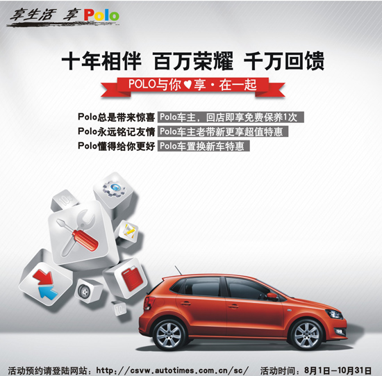 為了回饋上海大眾POLO兩廂客戶的厚愛(ài),在8月1日至10月31日期間廣西圣榮開(kāi)展POLO十周年用戶回饋活動(dòng)。