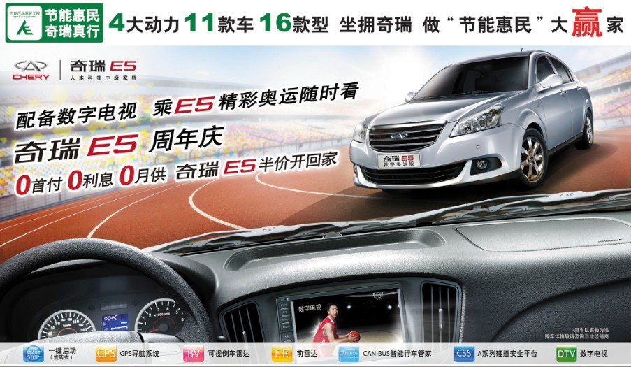 “現(xiàn)在購買奇瑞E5奧運版,可享受3000元節(jié)能惠民補貼和4000元現(xiàn)金。隨著奧運賽事如火如荼的開展,現(xiàn)在咨詢奧運版的客戶越來越多!逼嫒鹌嚹暇4S店負責人告訴記者。作為國內(nèi)10萬元左右唯一一款裝備前駐車雷達、無鑰匙進入、一鍵啟動、后可視倒車雷達、GPS導航、CAN-BUS智能系統(tǒng)等多項人性化應(yīng)用科技于一身的中級家轎,如此超凡的實力外加數(shù)字電視功能及7000元鉅惠,自然引爆消費者的購買激情。來自江西的王先生表示,由于工作原因,下班較晚,而中國隊一些重要的奧運賽事都是在他下班前后,所以他早早就計劃想購入一款可在車內(nèi)觀賞電視的車型,這樣下班可在車內(nèi)比賽看完再回家,但因車價過高遲遲未入手,如今正好遇上E5周年慶及E5入選最新節(jié)能惠民工程,不僅享受國家3000元節(jié)能補貼,還加增4000元購車現(xiàn)金,一下子節(jié)省近7000元,立即決定購買E5奧運版。