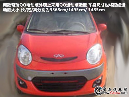 普通版QQ的長寬高分別為3550/1495/1485mm。而目前新版奇瑞QQ電動版的長寬高為3568/1495/1485mm,僅僅在長了18mm,基本可以忽略不計,至于外觀將采用奇瑞QQ運動版造型。