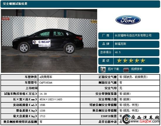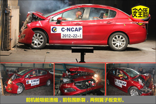 結(jié)論:這次正面碰撞中,馬自達3星騁雖然碰撞圖片看不出明顯與兩車差異,但前后假人中,除開前排假人小腿有失分外,其余都是滿分,這個表現(xiàn)是不錯的。而標(biāo)致308的胸部、大腿、小腿均有失分,這將直接導(dǎo)致得分?jǐn)?shù)稍低,不過對比來看,308正面碰撞綜合得分仍然勝過新?怂。新福克斯問題就是胸部失分較多。