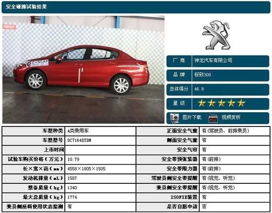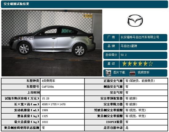從公布的碰撞結(jié)果看,三車均為五星,不過得分仍然有一定差距。第一名為馬自達3星騁,50.2分;緊隨其后是東風(fēng)標(biāo)致308,46.8分;長安福特新?怂够46.5分,排名最后。