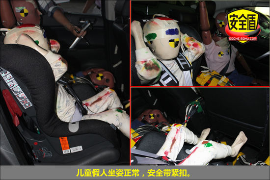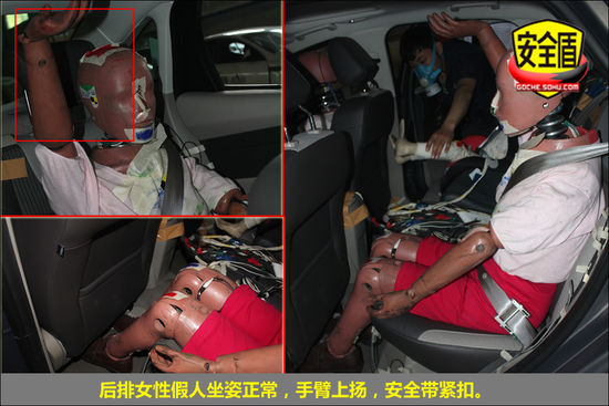 后排女性假人運動幅度較大,手臂不規(guī)則舉動;兒童假人坐姿正常。