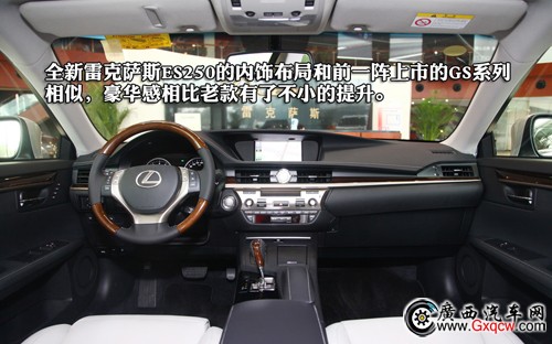 全新ES的內(nèi)飾設(shè)計同樣承繼了新一代GS以來的新一代雷克薩斯設(shè)計風(fēng)格,水平式的中控臺線條賦予車內(nèi)更為成熟穩(wěn)重的視覺感受。中控臺上方更鑲崁了大型液晶顯示屏,而下加入了圓形的指針式時鐘,強化了車內(nèi)的豪華和典雅氣氛。為了進一步突顯出內(nèi)部的高級質(zhì)感,新一代ES運用了大量的木紋飾板于中控臺及方向盤上方,并以銀色飾板點綴其中,細節(jié)部分更顯得細致。
