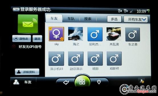 車主購(gòu)買了廣匯云服務(wù)系統(tǒng)后,都會(huì)拿到一個(gè)車友號(hào),這個(gè)車友號(hào)如同QQ號(hào)一樣,可以讓你隨時(shí)加上你的好友,與車友共享位置點(diǎn)、發(fā)送語音短信。如果你是喜歡自駕游的車主,那“組建車隊(duì)”的功能再適合不過了,你可以加入好友發(fā)起的活動(dòng)也可以自己組建車隊(duì)邀請(qǐng)好友加入,“頭車導(dǎo)航”與“語音群聊”的功能讓掉隊(duì)的情況不再出現(xiàn)。